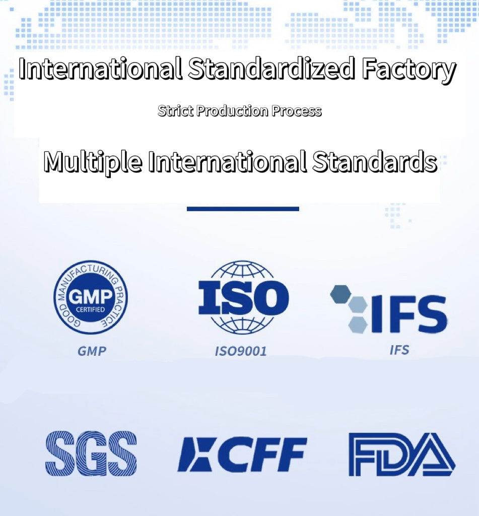 Our probiotics are produced in an internationally certified facility, operating under the strictest GMP, ISO9001, IFS, SGS, and FDA standards — ensuring that every batch meets the highest levels of quality and consistency.