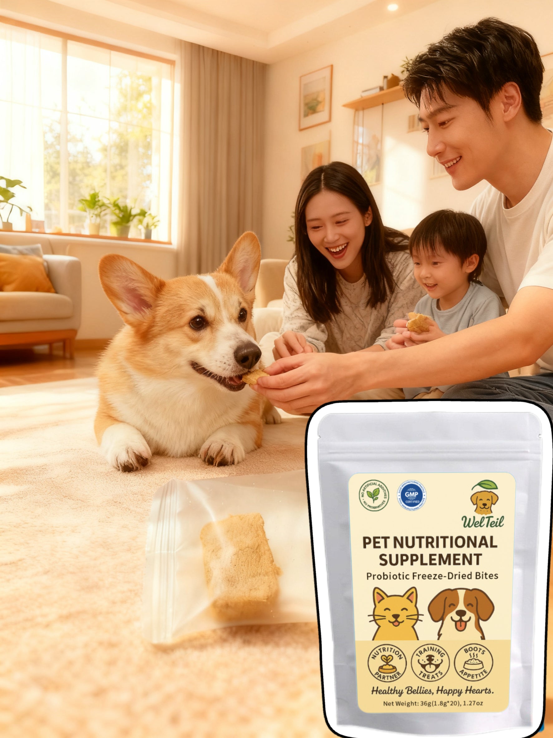 'WelTeil' comes from the fusion of 'Well' and 'Tail' - symbolizing wellness for every wagging tail. It's a promise we make: to bring love, trust and lasting vitality to every furry family member, every single day.